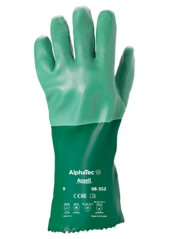 • Protección avanzada: Los guantes resistentes a productos químicos AlphaTec® 08-352 son 100% a prueba de líquidos y protegen contra una amplia gama de productos químicos peligrosos, evitando quemaduras y otras posibles lesiones en el lugar de trabajo.