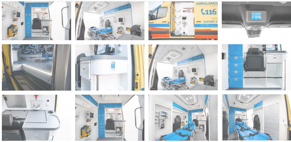 Los profesionales sanitarios se benefician de una altura de la célula sanitaria superior al resto de ambulancias, llegando hasta los 2048mm. Esta ventaja se debe a la sustitución del techo original por uno de fibra desarrollado por Bergadana.