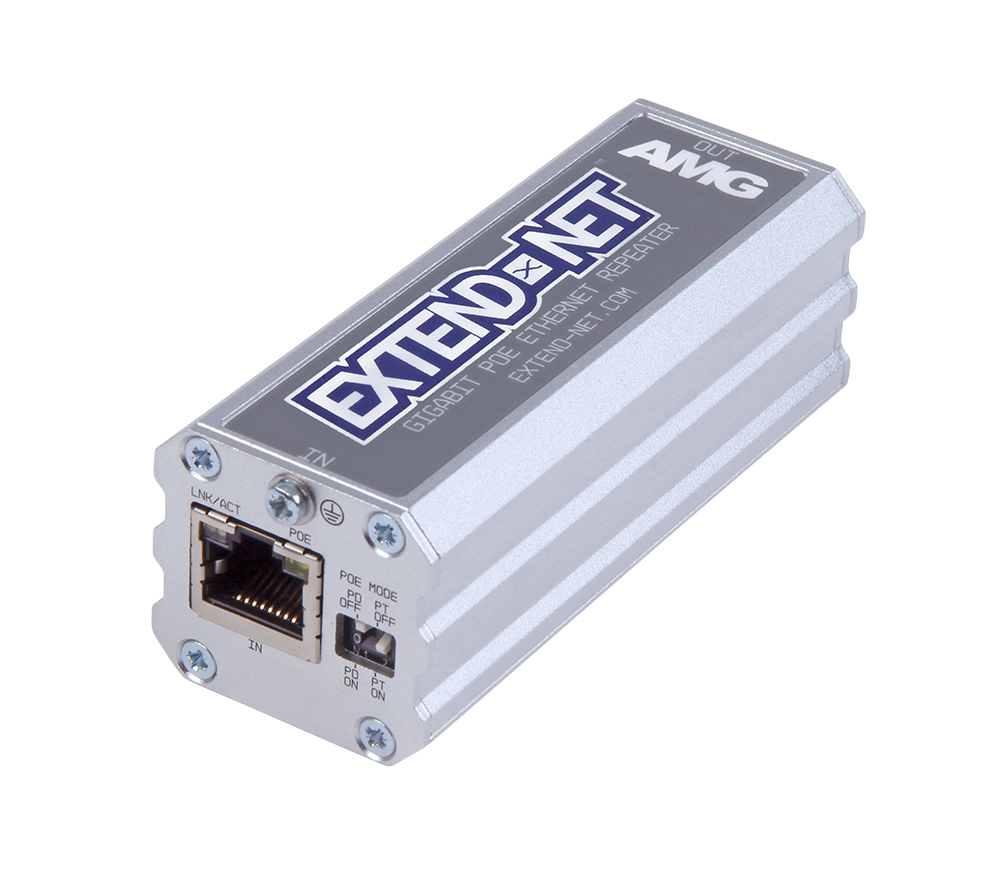 Los repetidores Ethernet industriales Extend-Net™ de AMG proporcionan extensión Ethernet de 10/100/1000 Mb a través de cable UTP, con soporte para PoE pass-through de 30W o 60/90W. Estos modelos de un solo canal incorporan dos puertos RJ45 y ofrecen 100 metros adicionales de alcance sobre cable Cat5/6 estándar.