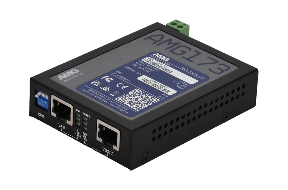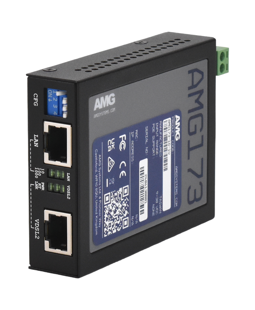 La serie AMG173 son extensores industriales Gigabit Ethernet VDSL2 de alta velocidad que admiten un ancho de banda agregado de hasta 300 Mbps (150 Mbps de bajada y 150 Mbps de subida).