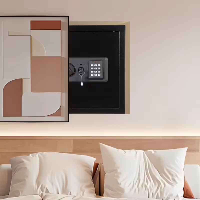 Su diseño compacto pero resistente permite ubicarla fácilmente en diferentes espacios, aportando seguridad sin ocupar demasiado lugar. Es una opción ideal para quienes buscan una caja fuerte duradera y funcional.