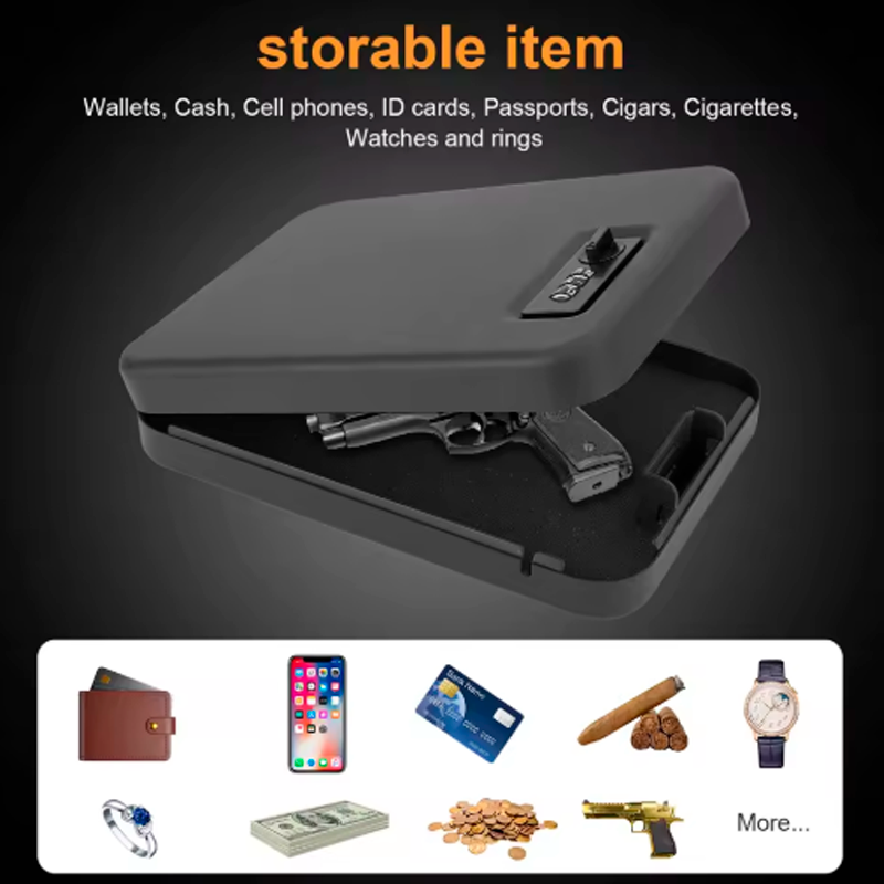 Es ideal para guardar pistolas, dinero en efectivo, joyas, documentos o pequeños objetos personales, ofreciendo una protección discreta y eficaz.