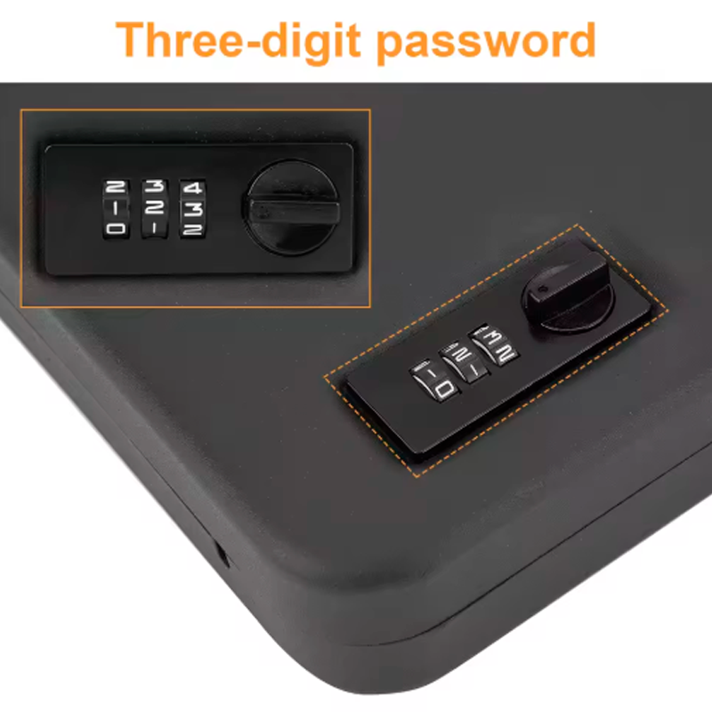 Esta caja fuerte es perfecta para quienes buscan una solución discreta y portátil sin complicaciones electrónicas. Su sistema mecánico garantiza funcionamiento en todo momento.