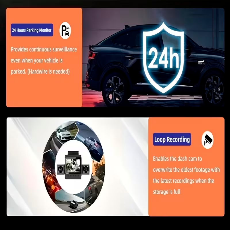 La función de monitorización de estacionamiento añade una capa extra de protección, registrando cualquier movimiento o impacto cuando el vehículo está aparcado. Compatible con tarjetas de memoria de hasta 64GB, ofrece suficiente capacidad para almacenar grabaciones importantes.