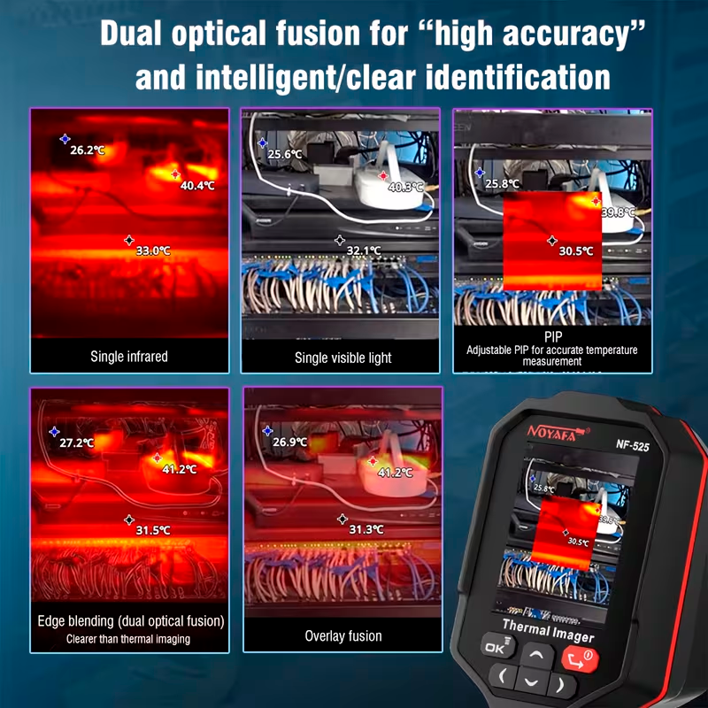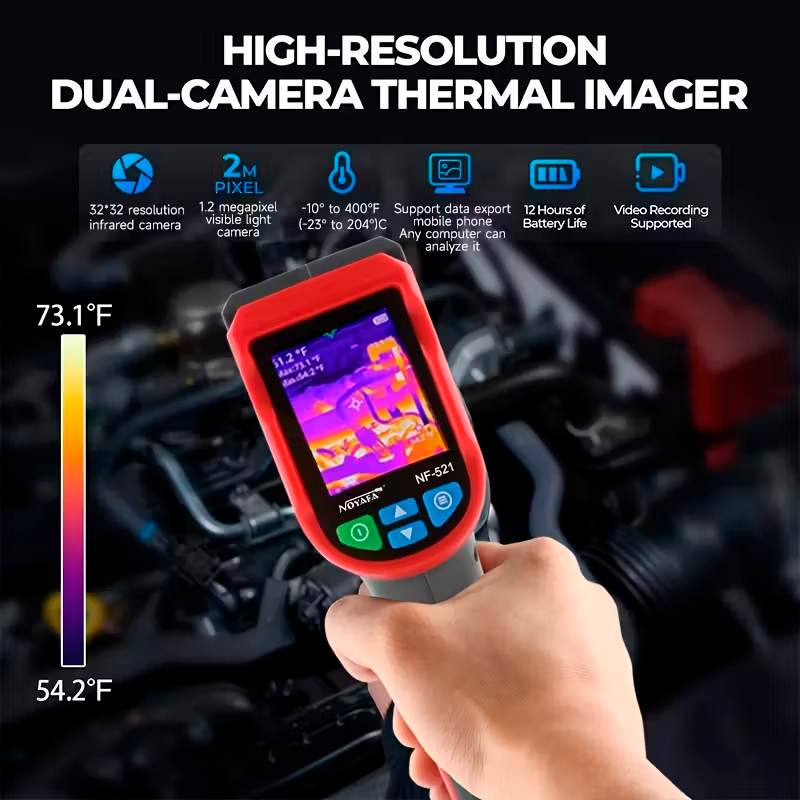 La cámara de imagen térmica industrial NOYAFA NF-521 es una herramienta profesional diseñada para inspecciones térmicas precisas en construcción, fontanería, mantenimiento técnico y diagnóstico de edificios. Gracias a su tecnología de detección térmica avanzada, permite identificar variaciones de temperatura, fugas de calor, humedad oculta o problemas eléctricos de forma rápida y eficiente.