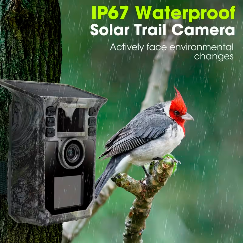 La cámara de rastro solar 4K de 64MP es una solución avanzada diseñada para monitoreo de vida silvestre, vigilancia de terrenos y observación de fauna en exteriores. Gracias a su alta resolución de vídeo 4K y fotografías de 64 megapíxeles, permite capturar imágenes nítidas y detalladas tanto durante el día como en condiciones de poca luz.