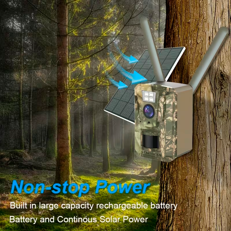 La cámara solar SZSINOCAM 4G para vida silvestre es una solución avanzada de vigilancia diseñada para monitorear terrenos, observar fauna y proteger propiedades en lugares sin conexión WiFi. Gracias a su conectividad celular 4G, permite acceder a la cámara desde cualquier lugar mediante el teléfono móvil, ofreciendo visualización en tiempo real y control remoto a través de la aplicación.