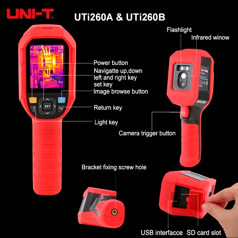 Dependiendo del modelo, ofrece diferentes resoluciones térmicas. El modelo UTi120S cuenta con resolución de 120 × 90, mientras que los modelos UTi260A y UTi260B ofrecen una resolución superior de hasta 256 × 192, proporcionando imágenes térmicas más detalladas para análisis técnicos más exigentes.