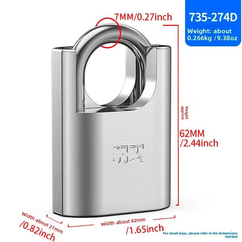 El candado antirrobo de aleación de zinc está diseñado para ofrecer una protección segura y duradera en todo tipo de entornos. Su fabricación en metal de alta calidad con acabado cepillado garantiza una excelente resistencia frente al desgaste, la corrosión y el uso diario.