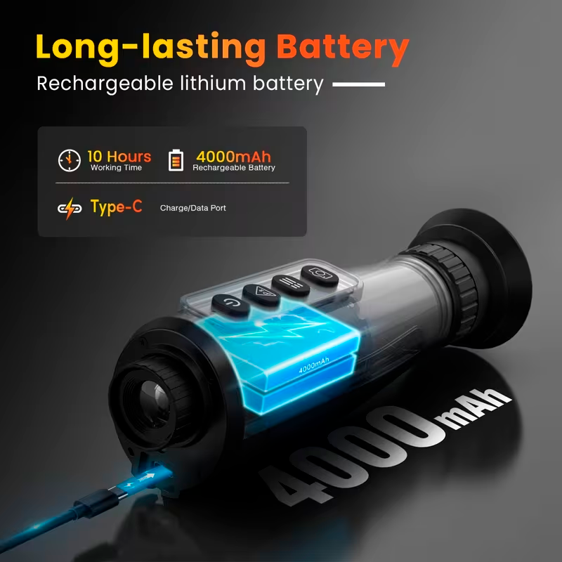 Este telescopio monocular térmico incorpora zoom digital de hasta 8x, lo que permite ampliar la imagen para observar con mayor precisión áreas o objetivos a distancia. Además, cuenta con función de grabación de vídeo y captura de fotografías, lo que facilita registrar observaciones térmicas para su análisis posterior.