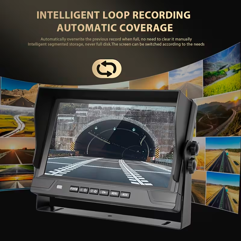 El kit de cámara de marcha atrás PODOFO RV con 4 cámaras es una solución profesional diseñada para ofrecer máxima visibilidad y control total en vehículos grandes. Gracias a su monitor LCD de 9 pulgadas con función DVR, permite grabar y visualizar simultáneamente diferentes ángulos del vehículo en tiempo real.