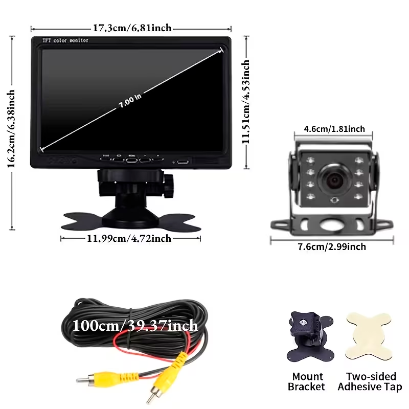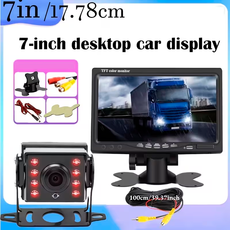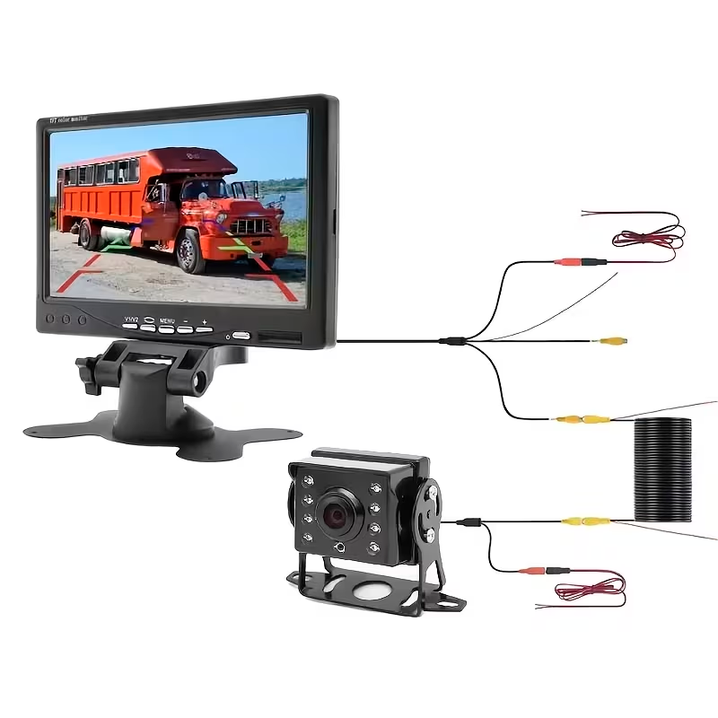 El kit de cámara de visión trasera de 7 pulgadas (17.78 cm) está diseñado para ofrecer seguridad y comodidad en maniobras de estacionamiento, especialmente en vehículos de gran tamaño. Su construcción de alta resistencia lo hace ideal para uso intensivo en condiciones exigentes.