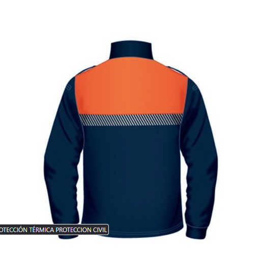 • DOS CANALES o TRABILLAS superiores en tejido de contraste, con cinta de sujección como refuerzo interior, situadas en ambos hombros, para sujetar el micrófono de la emisora ó identificación profesional.