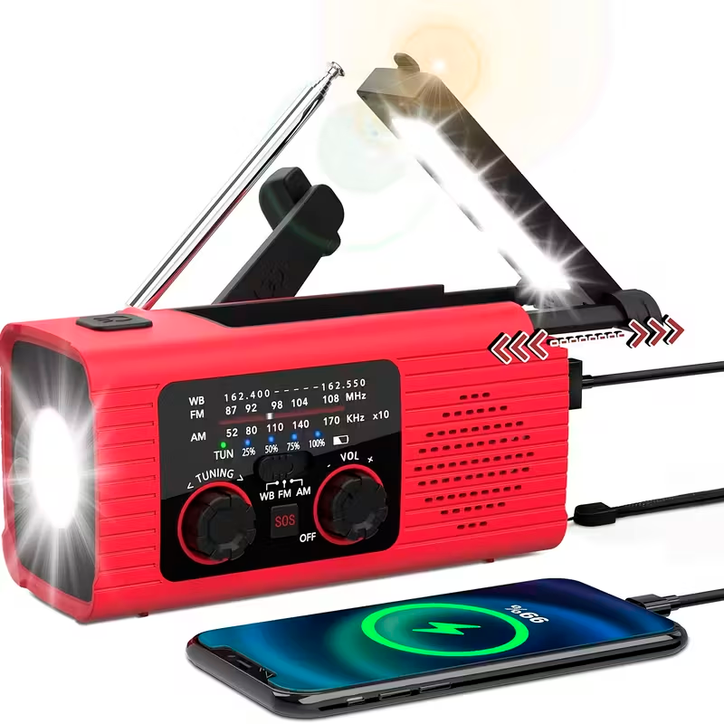 Su diseño clásico, portátil y resistente la convierte en una herramienta ideal para kits de emergencia, actividades al aire libre o preparación ante desastres, ofreciendo un dispositivo completo para mantenerse informado, iluminado y conectado.