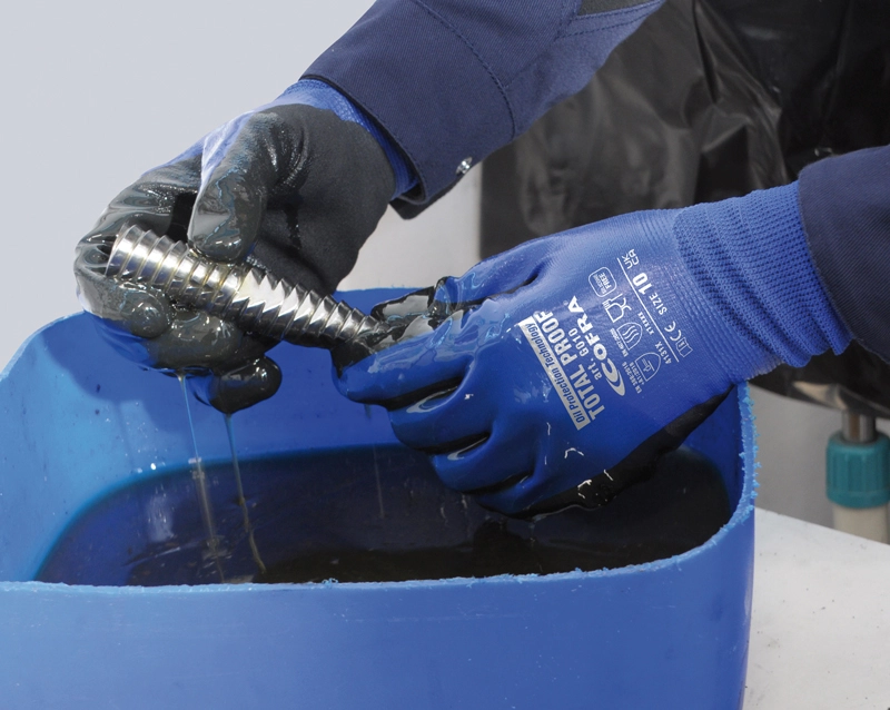 • Excelente protección contra aceites y grasas, gracias a la cobertura total de nitrilo