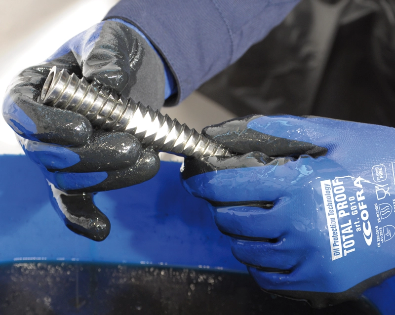 • Agarre elevado en las superficies aceitadas gracias a su revestimiento de nitrilo arenoso